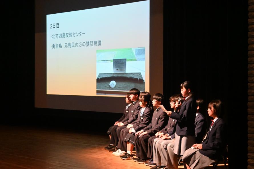 集会では、令和5年8月に北海道根室市などでの現地視察に参加した七ヶ浜町立七ヶ浜中学校、七ヶ浜町立向洋中学校の生徒による体験発表や、防衛省防衛研究所研究幹事の兵頭慎治氏による記念講演を通じて、北方領土問題に対する理解と関心を深めました。