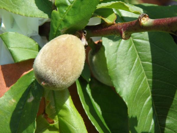 大きな桃の実を育てるには、間引きを行う必要があります。