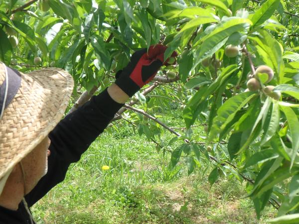 桃の摘果・袋掛けの作業を,以下より動画でご覧いただけます。