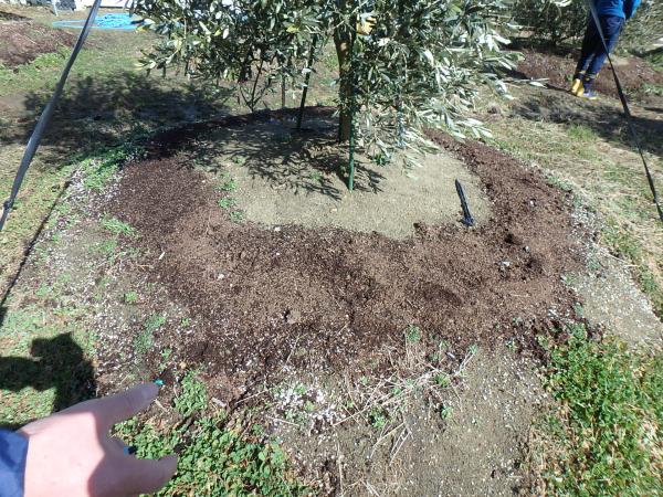 ※色が濃い部分が堆肥です。土壌が保温され,低温になり凍結するのを防ぐ効果があります。