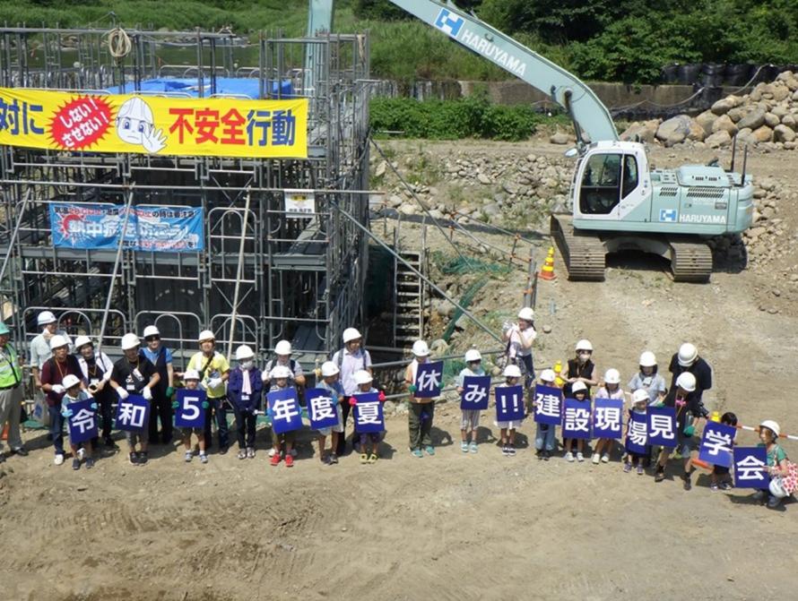 夏休み期間中の小学生と保護者を対象に、日頃接することのない工事現場の見学や建設機械の搭乗体験等を通じて、建設にかかわる仕事や工事に使われている技術に触れ、関心・理解を深めていただくため、毎年開催しております。