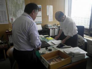 また,ダム管理演習では,ダム状況について管理ダム事務所と河川課,東北地方整備局や市町村などへ通知・連絡を実施し、急激な河川水位上昇による対応として,樽水ダムの「ゲート操作による洪水調節」の確認等を実施しました。