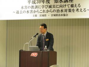 「知水講座」は,今後の河川行政を担う職員の人材育成を図るとともに,公開講座として,県民の方々に,宮城県の河川行政についてよりよく知っていただき,今後の宮城県の河川行政のあり方を一緒に考えるために,平成16年から実施しています。