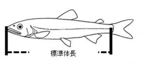 <アユの大きさ(標準体長)>