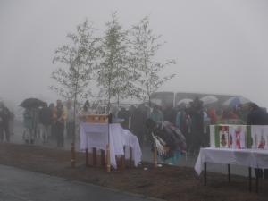 開通式典は,午前11時から山頂付近の「刈田駐車場 特設会場」で行われ,山形県知事をはじめとして宮城・山形両県の多くの方々が出席されました。