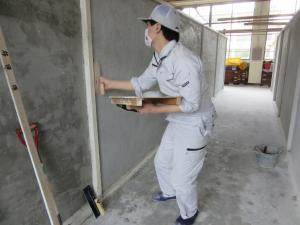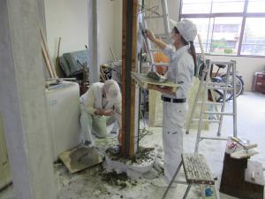 モルタル壁はもちろんのこと、日本の伝統的な壁(京壁,漆喰壁)の塗り方を中心に、建物基礎の仕上げやコンクリートの補修のほか、インターロッキング、ブロック積みなどの各種外構工事に関して学び、修了後には、即戦力として働けるよう作業に必要な知識と技能を習得します。