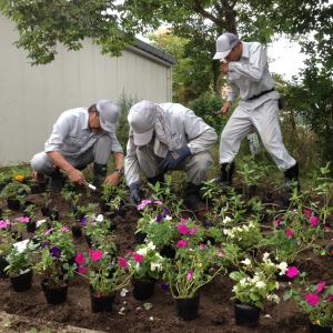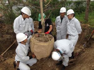 根堀及び植栽作業、造園実習、庭園管理実習、養生実習