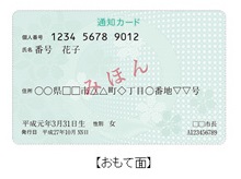 - 通知カードとは,本人の氏名,住所,生年月日,性別,個人番号が記載されたカードです。